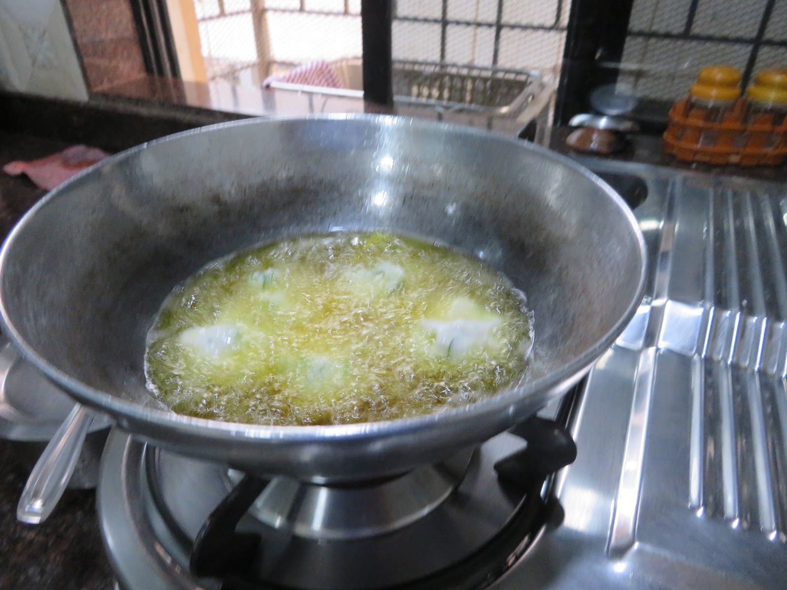 First take a kadai, add  required  oil. Wait for the oil to become hot. Mean time take bowl, mix all ingredients without adding water. Make like a vada batter. When the oil becomes hot put the bondas [ shape round ] in to the hot oil. Wait for the bondas to turn golden brown when the bondas become crisp and golden brown remove from the oil and serve with coconut chutney and sambhar.